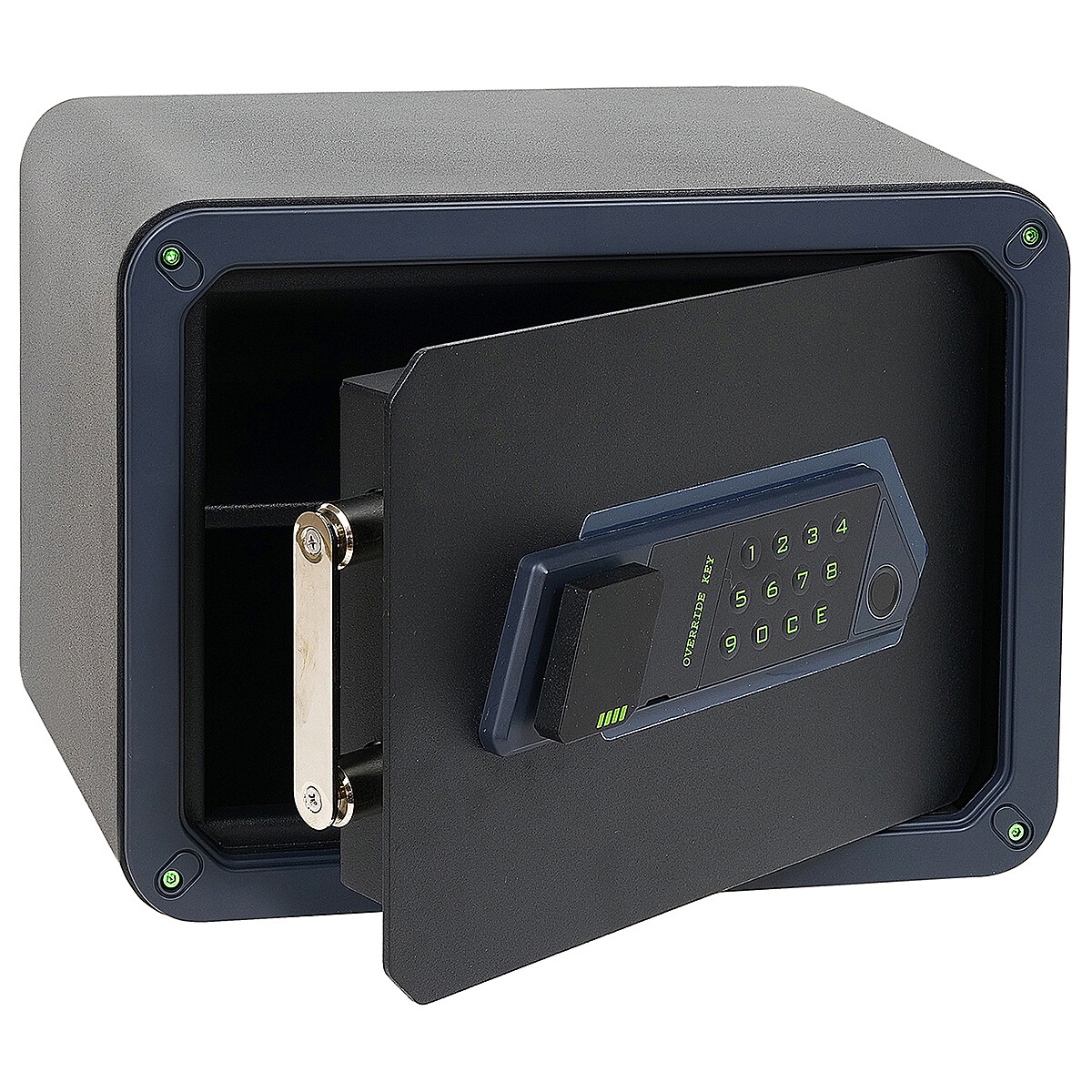 Acél széf elektronikus ujjlenyomat-zárral és numerikus kóddal