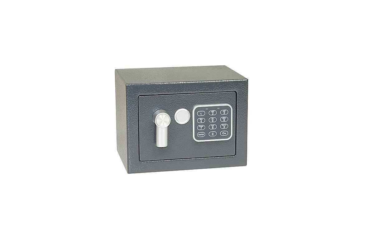 Acél széf elektronikus zárral, numerikus billentyűzettel és nyitókarral