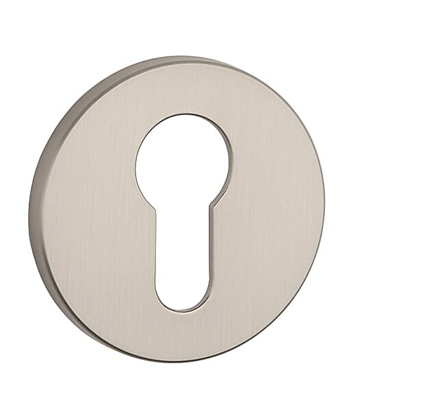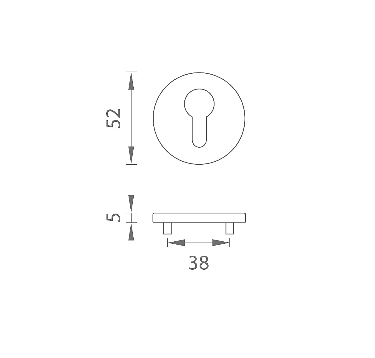 A kerek rozetta kiváló minőségű anyagokból - zamakból - készült és felületkezelt. A rozetta átmérője 52 mm, vastagsága 5 mm, és egy ovális lyukkal rendelkezik a belső kulcs (BB), egy lyukkal a zárbetét (PZ) és egy beépített kulccsal ellátott WC-készlet számára.