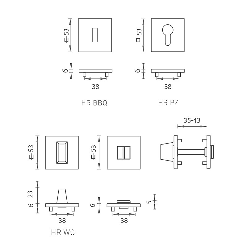 Ajtórozetta MP MPK - ROZETTA - HR SQ6 (CUM - Matt réz)