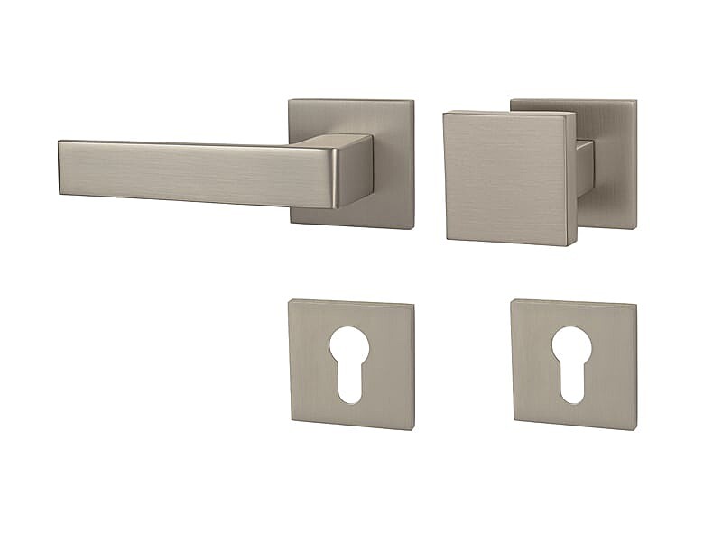 A négyzet alakú rozettával ellátott beltéri ajtók rozettás fogantyúja kiváló minőségű anyagokból - zamak - készült és felületkezeléssel rendelkezik. A rozetta mérete 53 mm x 53 mm, vastagsága 6 mm.