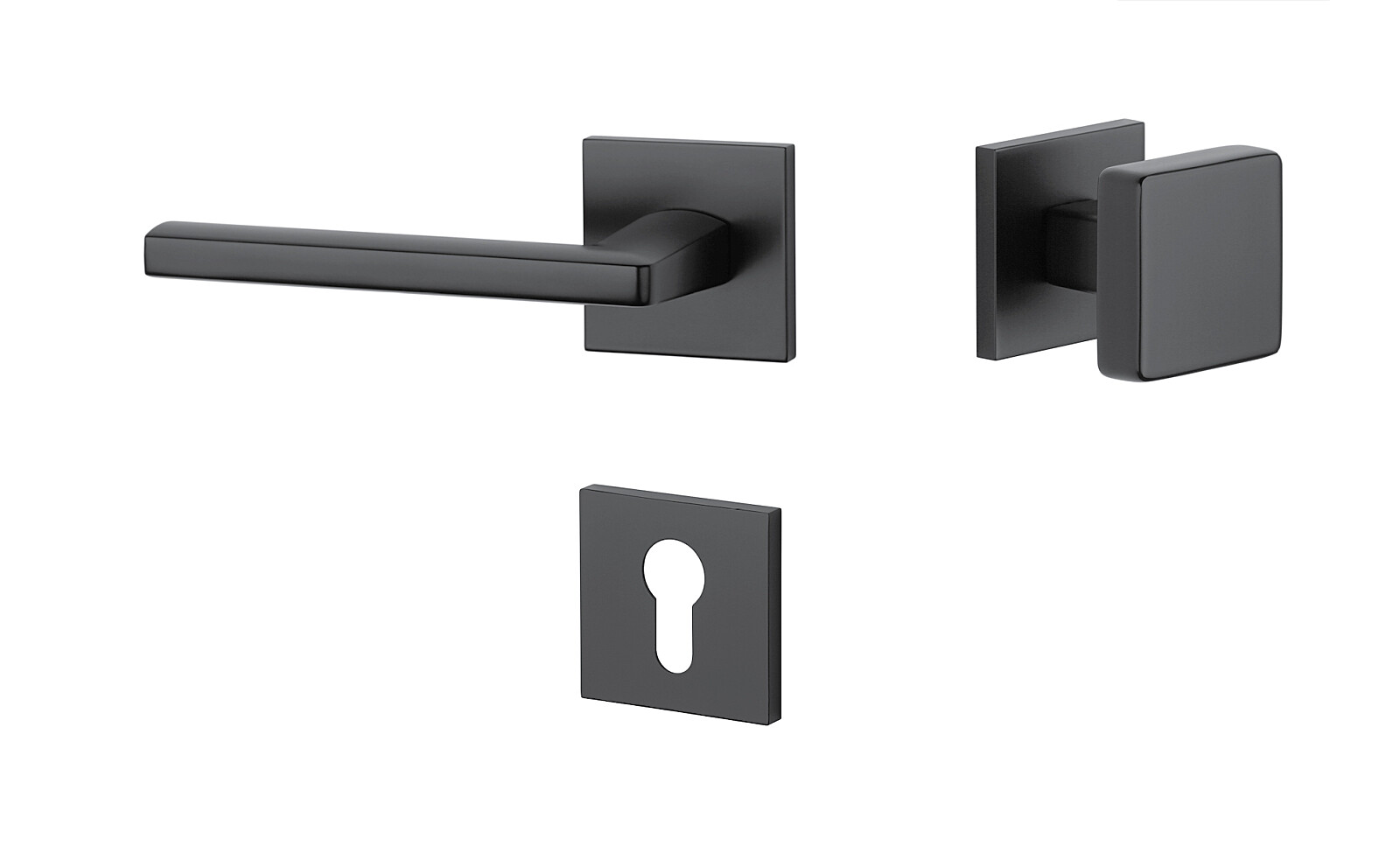 A négyzet alakú rozettával ellátott beltéri ajtók rozettás fogantyúja kiváló minőségű anyagokból - zamak - készült és felületkezeléssel rendelkezik. A rozetta 52x52 mm méretű és mindössze 7 mm vastag. A rozetta minimalista kialakítása az ajtókilincs nagy stabilitásával finom hatást kelt, teret engedve magának a kilincs kialakításának is.