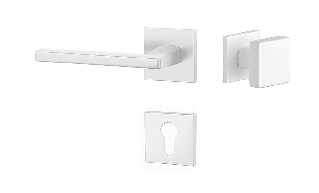 A négyzet alakú rozettával ellátott beltéri ajtók rozettás fogantyúja kiváló minőségű anyagokból - zamak - készült és felületkezeléssel rendelkezik. A rozetta 52x52 mm méretű és mindössze 7 mm vastag. A rozetta minimalista kialakítása az ajtókilincs nagy stabilitásával finom hatást kelt, teret engedve magának a kilincs kialakításának is.