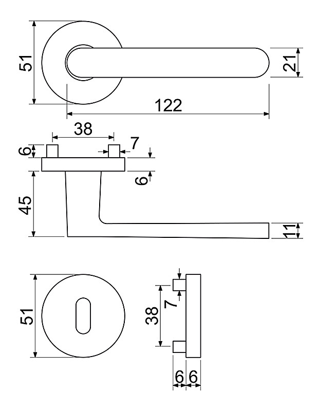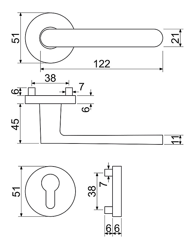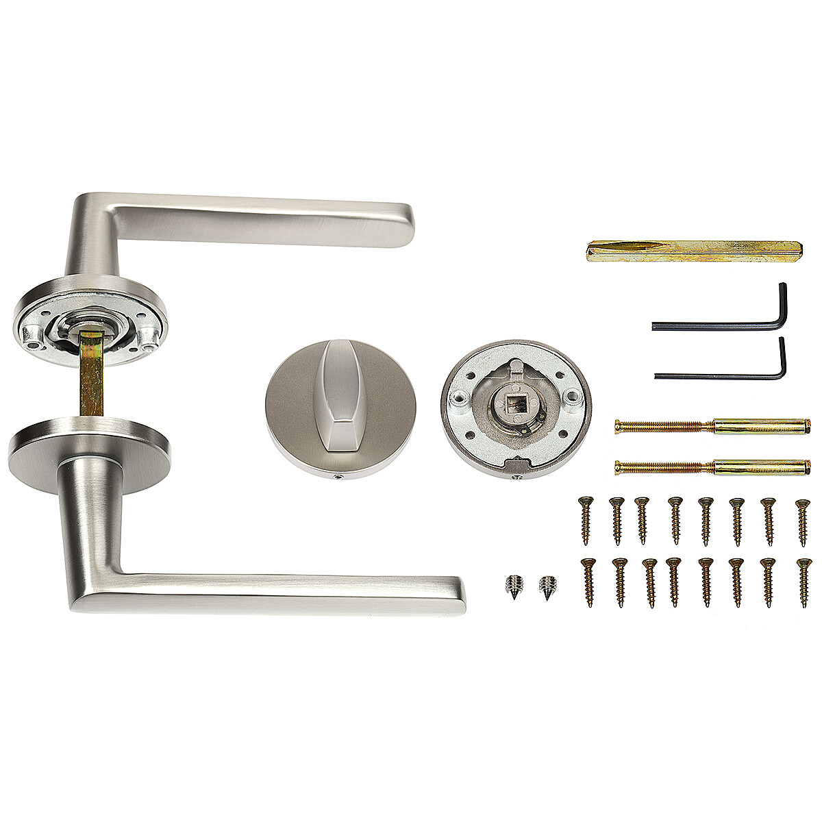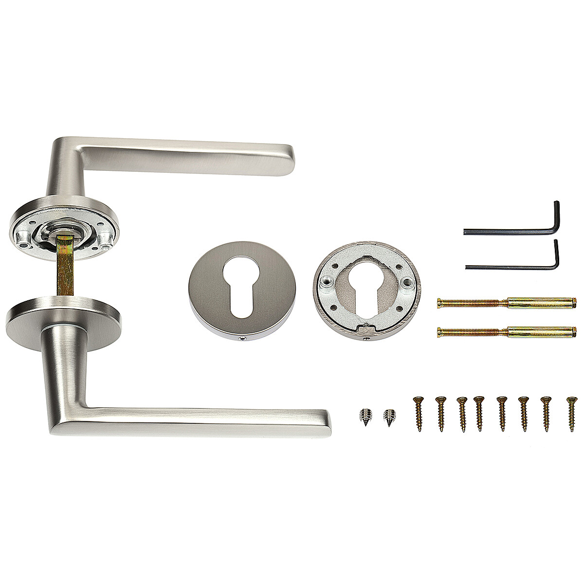 Alumínium szerelvények kerek rozettákon, kilincsvisszahúzó rugóval