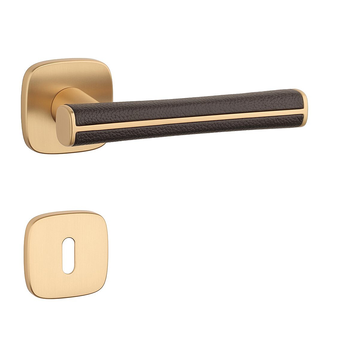 Ajtóvasalatok MP AS - DAVIDIA - QR 7S (OLS - Szálcsiszolt sárgaréz / barna bőr)