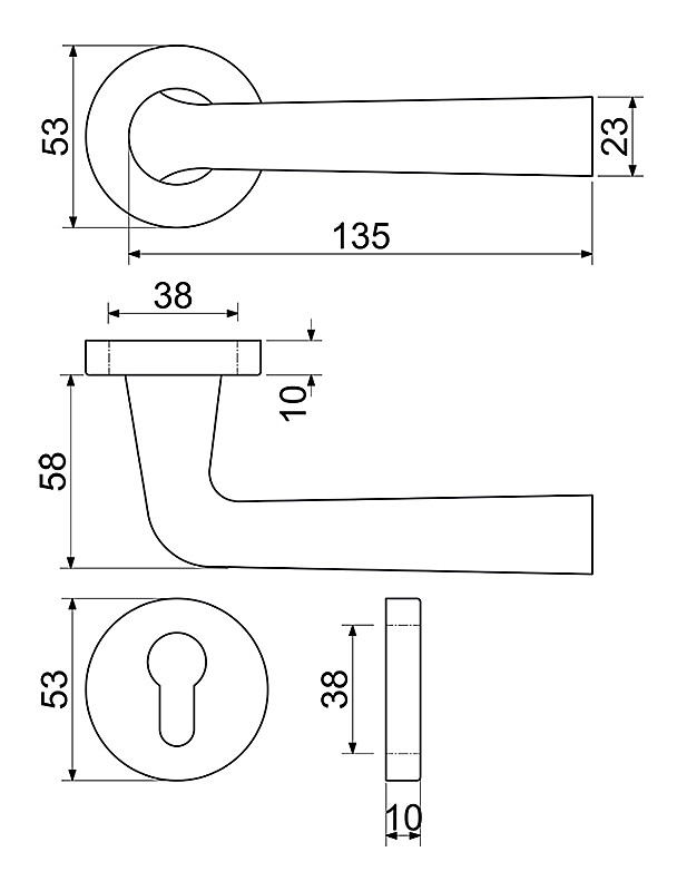Gazdaságos acél szerelvények kerek rozettákon, kilincsvisszahúzó rugóval