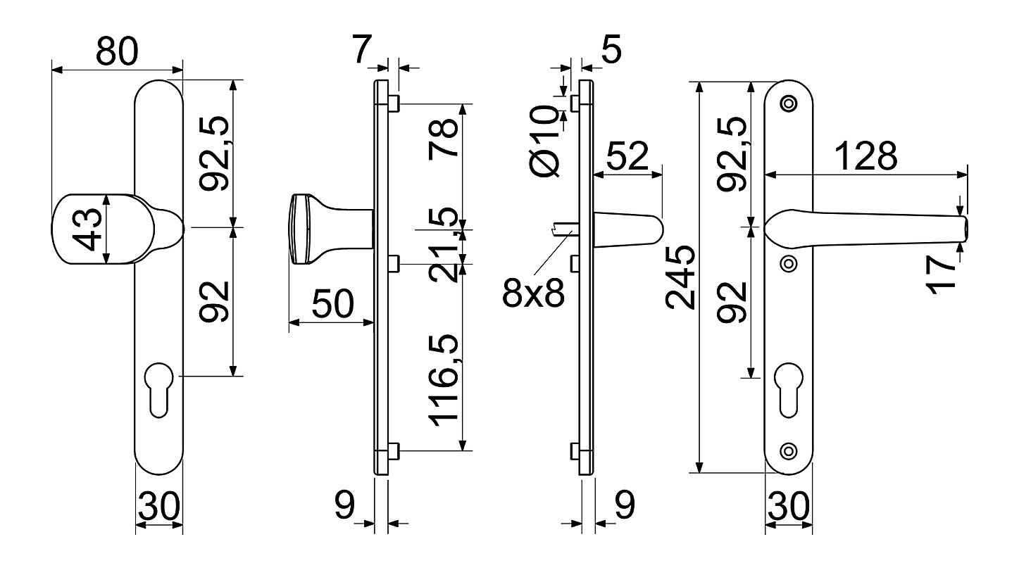 • RHD.005 - 72–92 mm - a derékszög és a csavarok lerövidítése után 40 mm-es ajtóvastagságtól