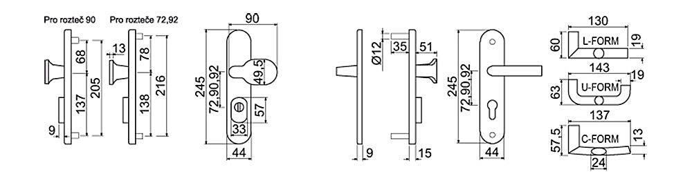 | Térköz | 72 mm, 90 mm, 92 mm |