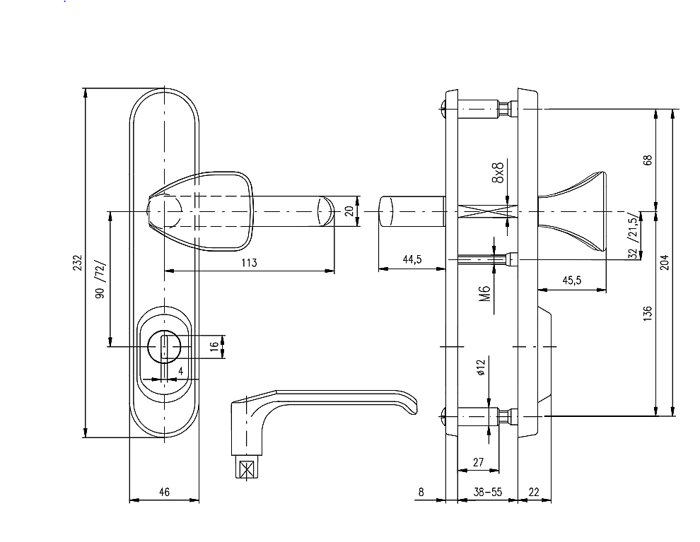 Ajtóvastagság: 38-55 mm