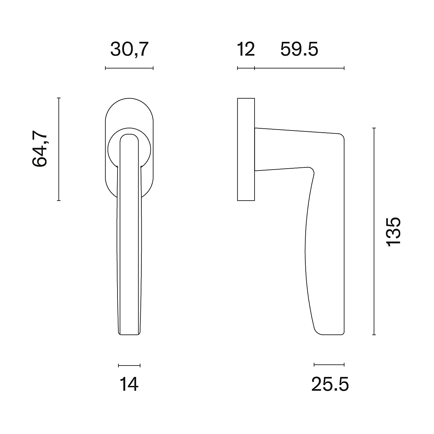 A négyzet alakú rozettával ellátott Euro ablakkilincs kiváló minőségű zamak anyagból - cink ötvözetből készült és felületkezeléssel rendelkezik. A rozetta méretei 64,5 x 30 mm, vastagsága 12 mm.
