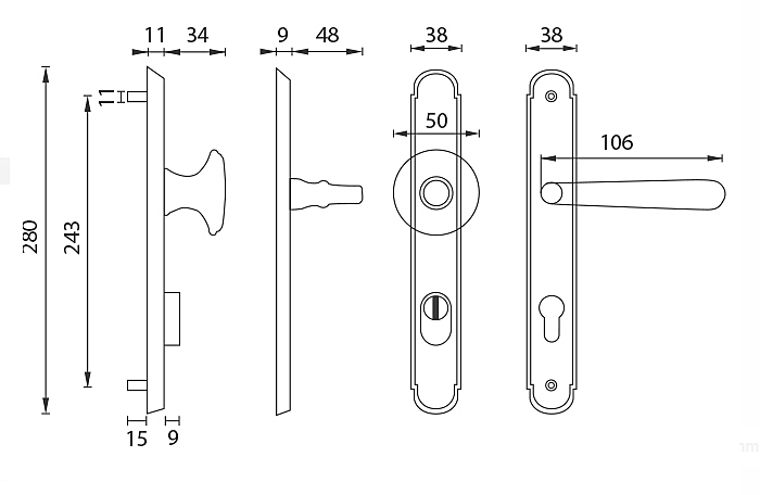 | Egyéb paraméterek | Bal-jobb hajtókar - beállítás összeszerelés nélkül, Becsavarva az ajtón, Helyezze be a fedelet, Külső használatra nem alkalmas, Matt, nem tartalmaz visszatérő rugót |