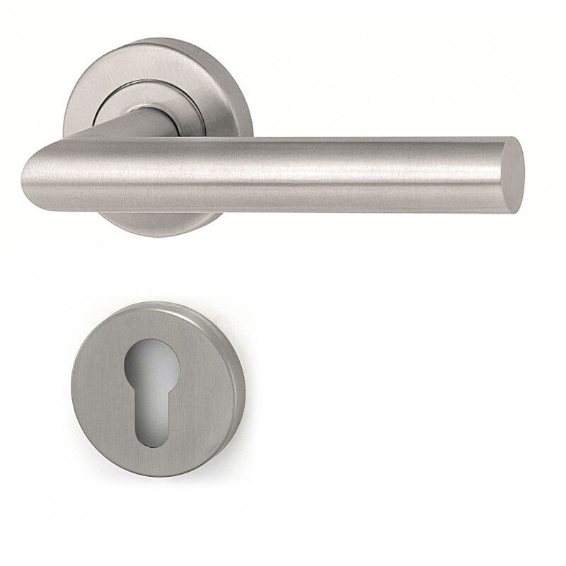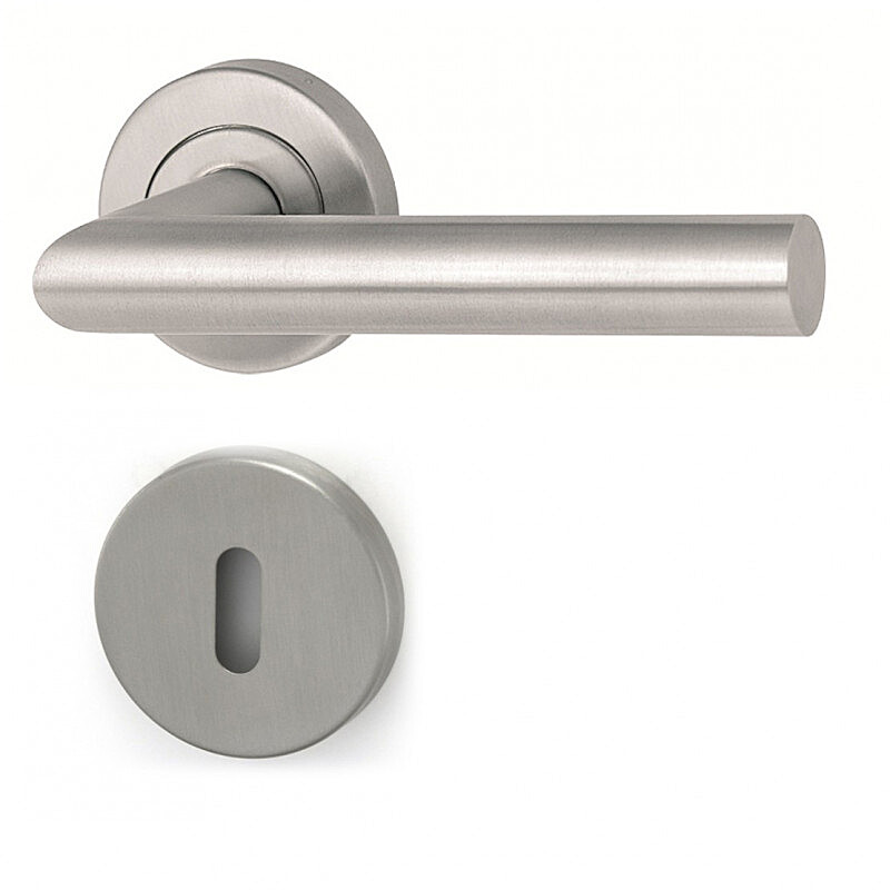 Az MT 00 kilincs kerek, szögletes vagy ovális rozettával beltérre és kültérre is alkalmas, DIN 1.4301 rozsdamentes acélból készült, szatén matt felülettel, modern és időtálló dizájnnal, higiénikusan biztonságos és hosszú élettartamú.