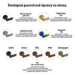 Ez az ajtóvasalat kapható normál kulcsos (BB), cilinderbetétes (PZ) vagy WC-zárral és záródásjelzővel ellátott kivitelben a fürdőszobába vagy a WC-be.