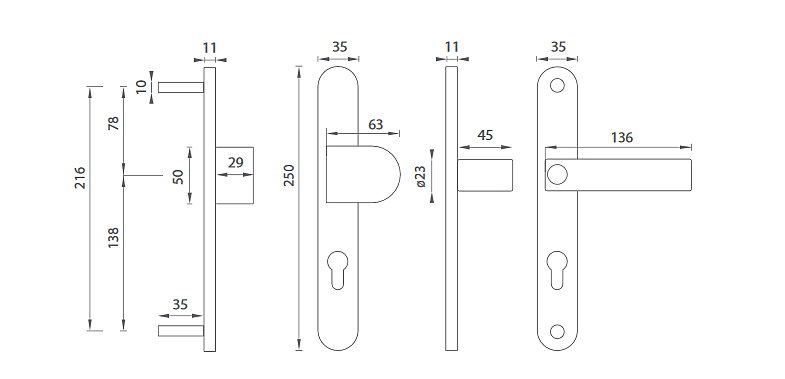 A biztonsági szerelvények belülről hosszú csavarokkal rögzíthetők. Kívülről lehet golyó, fogantyú vagy védőpajzsos fogantyú a fúrás és a pajzstörés ellen. Egyes típusok védőkupakkal rendelkeznek, amely megakadályozza a betét nem kívánt kezelését.