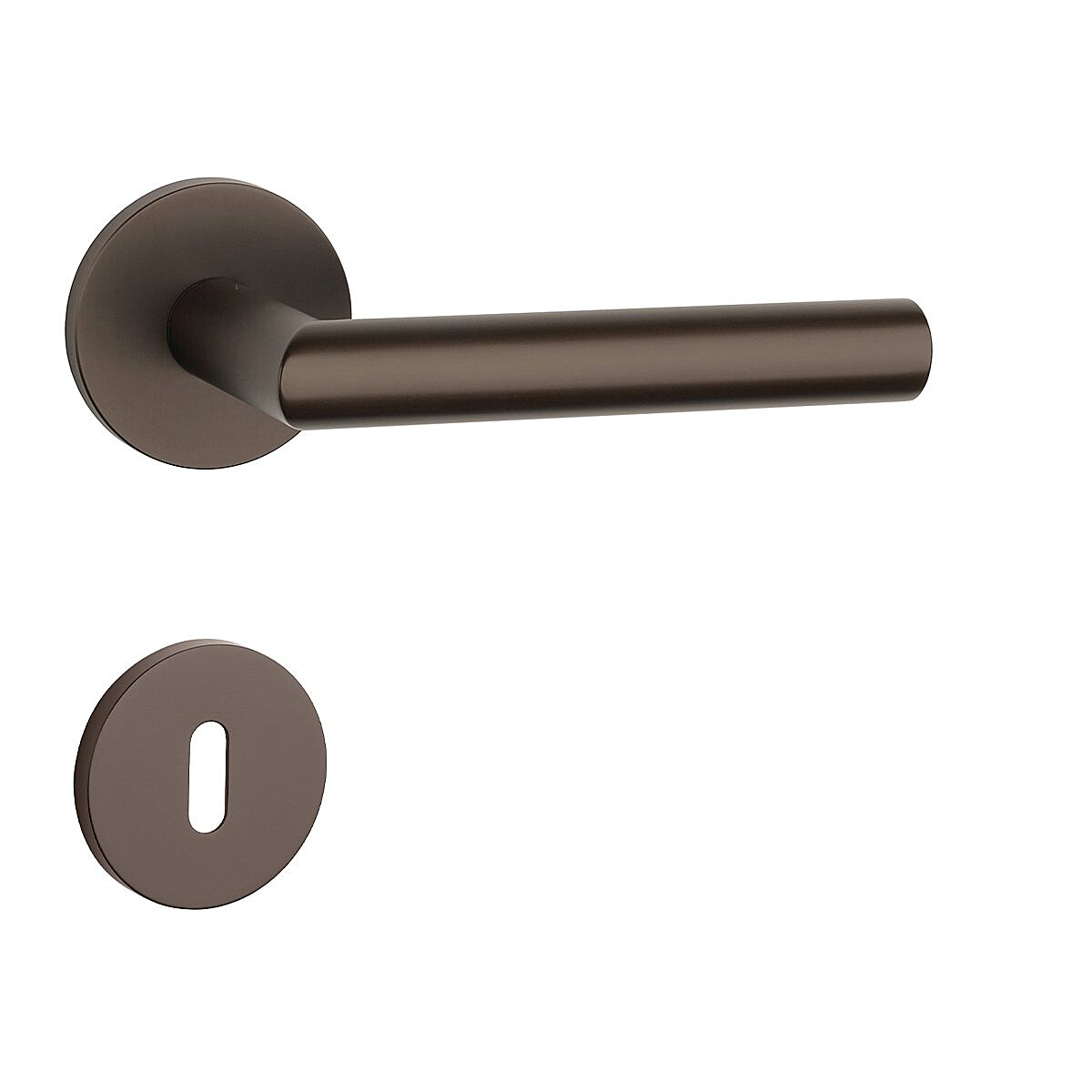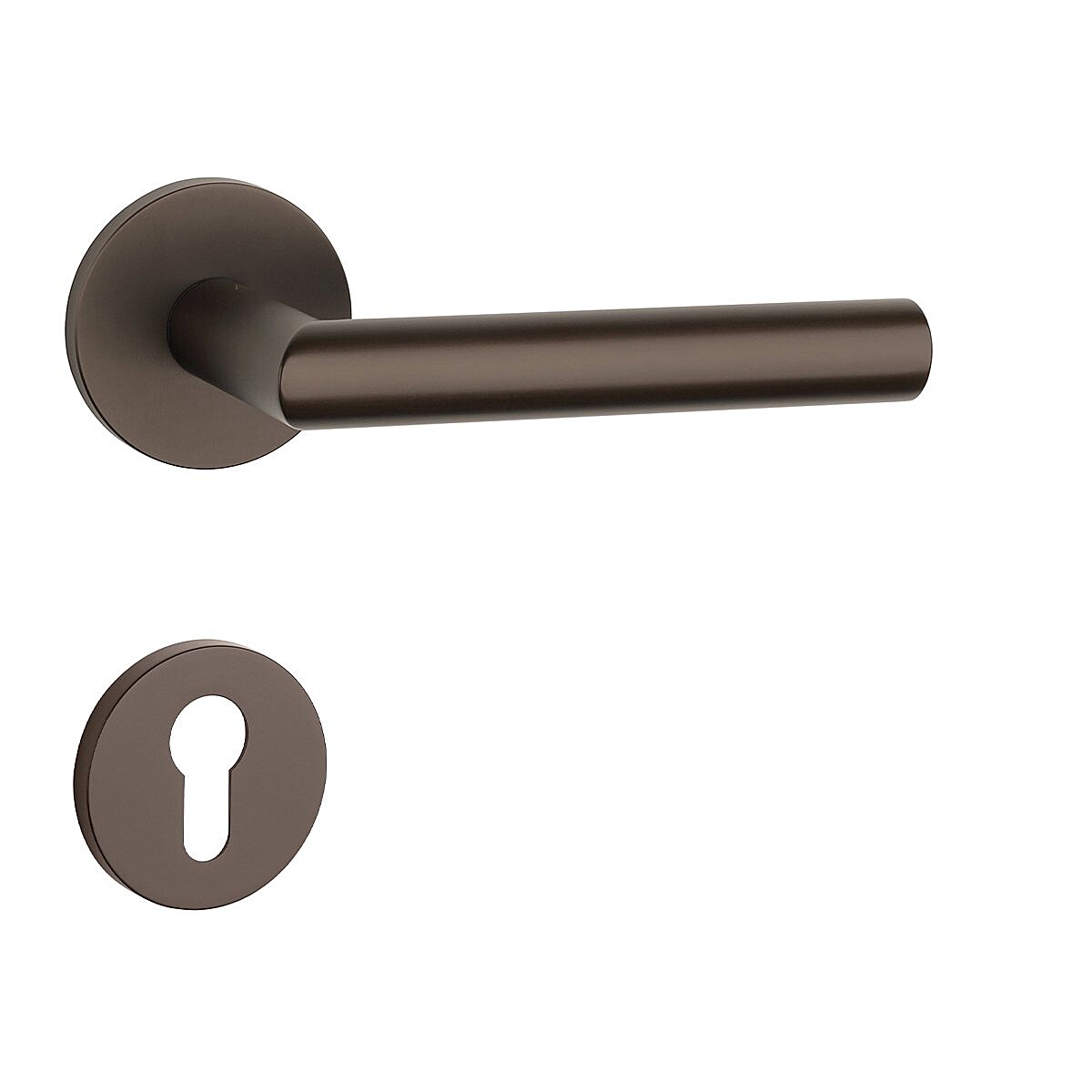A belső ajtókhoz való, kerek rozettás kilincs kiváló minőségű anyagokból - zamakból - készült és felületkezelt. A rozetta átmérője 53 mm, vastagsága mindössze 7 mm. A rozetta minimalista kialakítása és a kilincs nagy stabilitása az ajtón finom hatást kelt, így teret enged a kilincs formatervezésének.