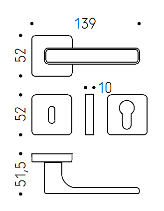 | Lyuk típusa - változat | Alsó rozetta nélkül, Furat a hengerbetéthez PZ, Lyuk a normál BB kulcshoz, WC kulcs |