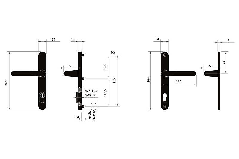 Biztonsági szerelvények esetében ismerni kell a kilincs tengelye és a kulcs tengelye közötti távolságot (osztás). A szabványos távolság 72, 90 vagy 92 mm. A szerelvények szabványosan 65 és 75 mm közötti ajtóvastagsághoz alkalmasak.