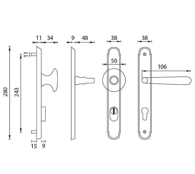 A bejárati és biztonsági ajtókhoz való, megerősített rusztikus kilincs cilinderborítás nélkül, kiváló minőségű anyagokból - sárgarézből - készült és felületkezelt. A rusztikus kilincs méretei 38 mm x 280 mm, vastagsága 11 mm.