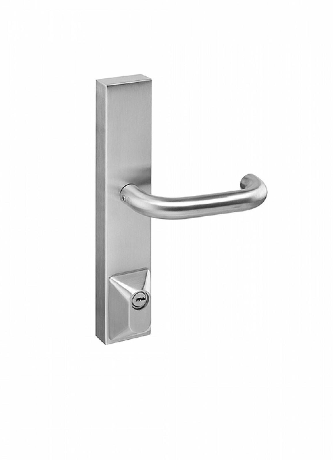 Az IN.20.950 rozettás pánikkilincs kiváló minőségű rozsdamentes acélból készült, felületkezelt, és alkalmas az IN.20.951 pánikvaselekhez. A kilincs beépített hengeres félbetéttel rendelkezik, és nem megy át a bevésőzáron.