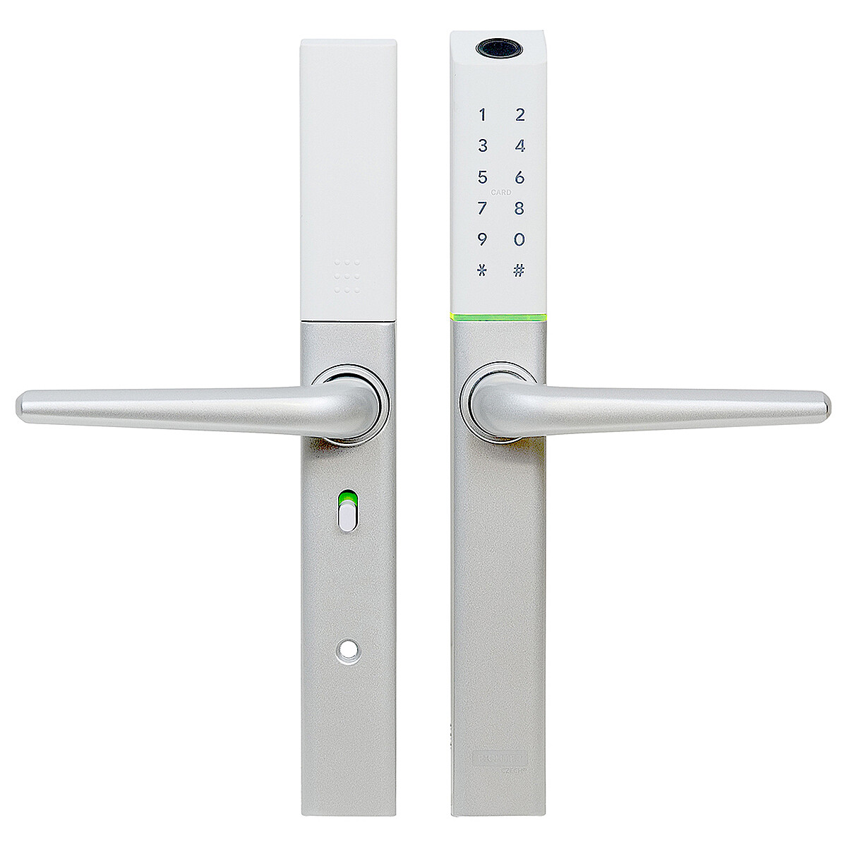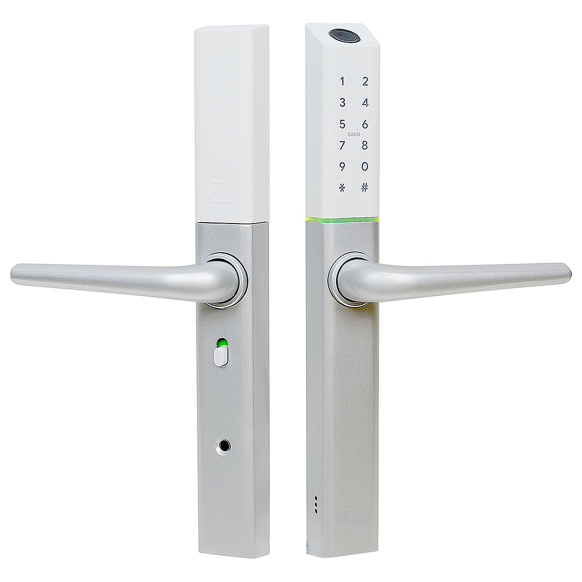 - Lehetőség van ujjlenyomattal, IC-kártyával, numerikus kóddal vagy TTLock mobilalkalmazással történő hitelesítésre klasszikus kulcs használata nélkül.
