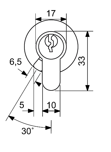 Biztonsági gomb 6 tűs hengeres fúrásállósággal és roncsolásmentes dinamikus módszerrel (ún. bumping)