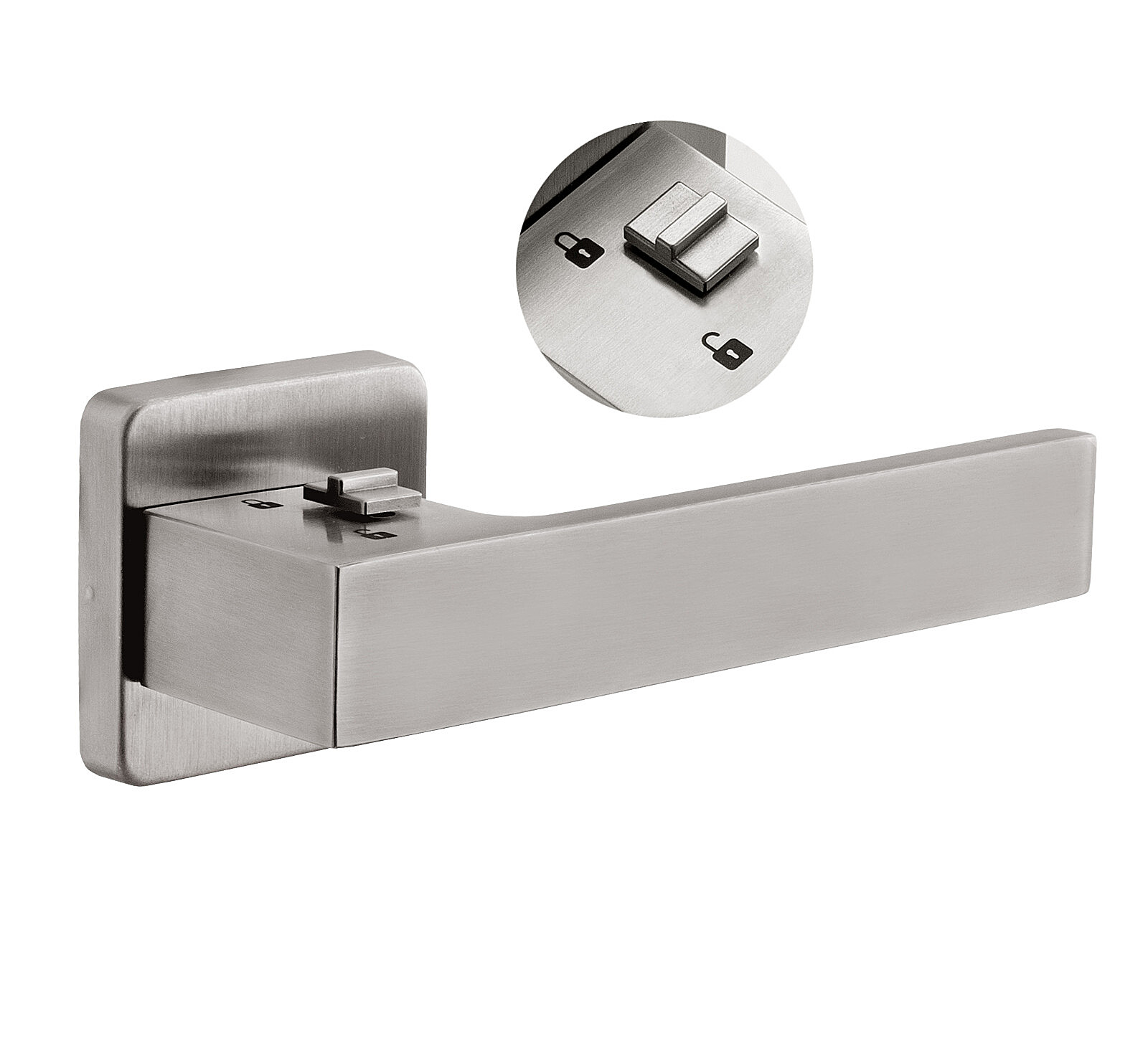 RAVENA/H BLOK zárható kilincs WC-k és fürdőszobák belső ajtajához, kívülről történő vésznyitás lehetőségével.